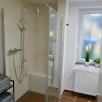 Wohnen Im Ehemaligen Stall有1间卧室. Wohnen Im Ehemaligen Stall公寓有1间浴室.这些浴室带有步入式淋浴间 和分开的洗手间.